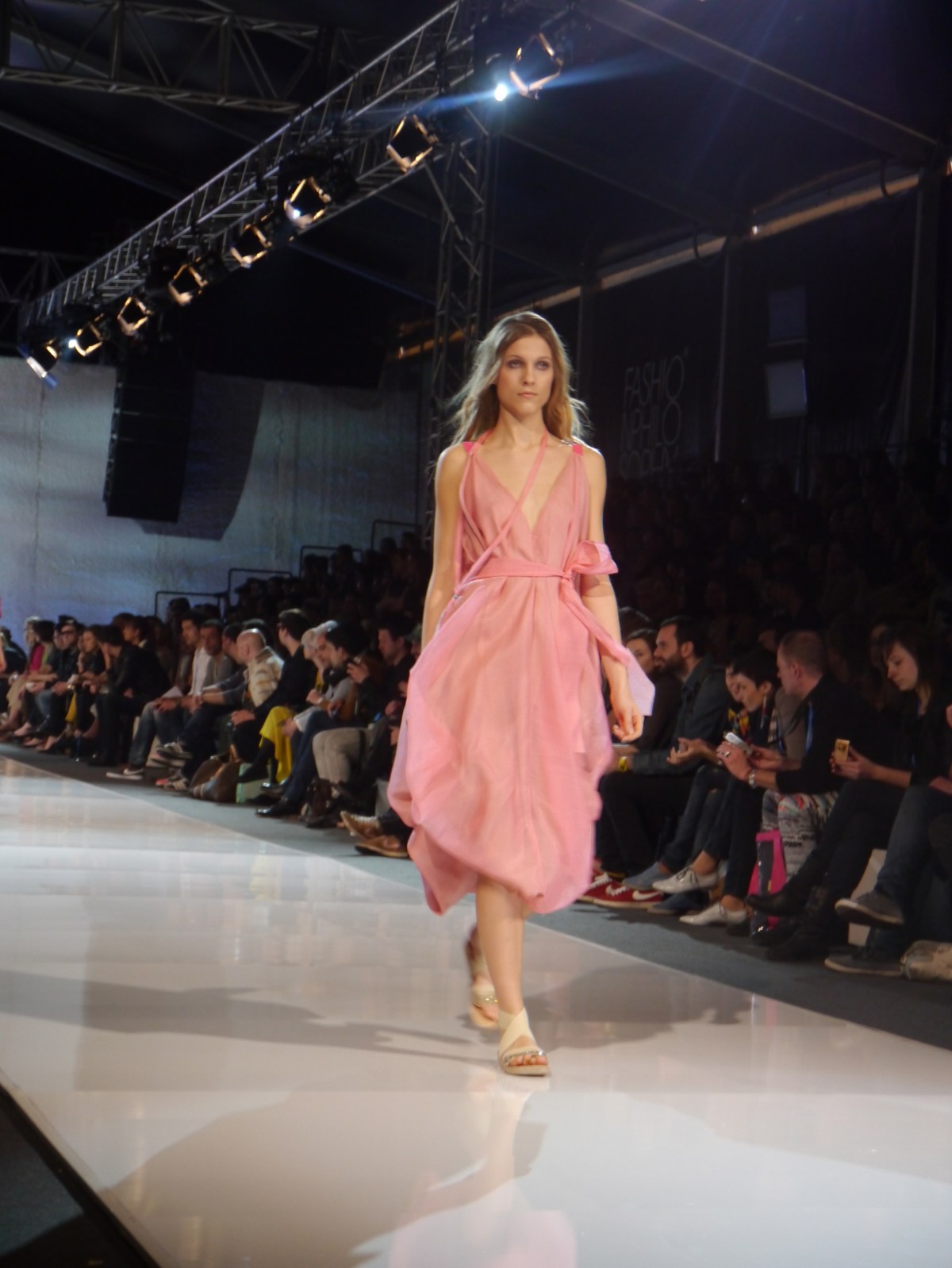 The Viola Spiechowicz collection really brought that out to me- apart from the dreamy colours and poufs of material, the attention to details and shapes was a bit further away from that austere typical grey and black seen at the Off Fashion Schedule. The hems were properly done up, the material was elegantly folded to mimic and emphasize the curves of the woman’s body, and no detail on the belting or the models hair and make-up was left unattended. I cannot say this is a perfect collection- the pinks were a tad too bright and of course the question of seasons comes to mind, but it was definitely a well presented collection, and one that truly stood out so far at the Fashion Week.